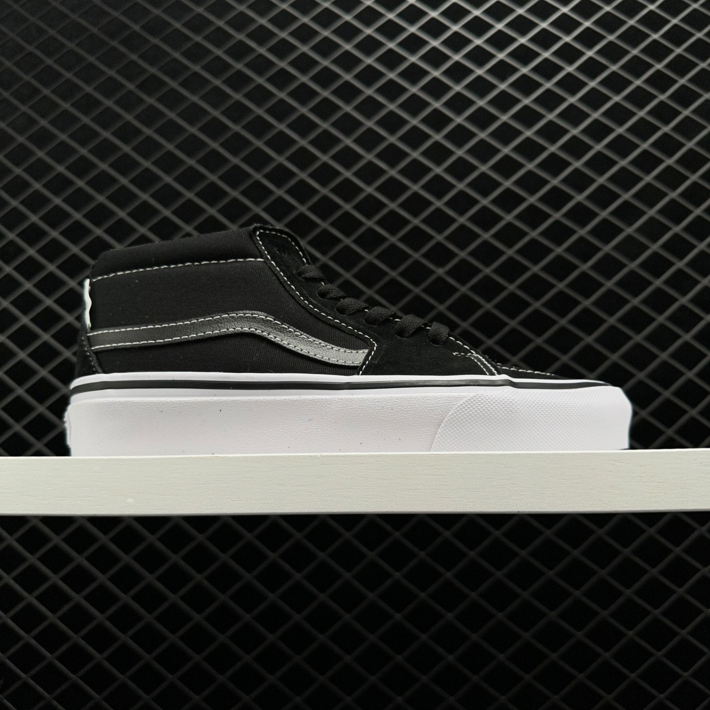 The Vans JJJJound x Sk8-Mid Vault LX ‘Black’ takes design inspiration from the classic Sk8-Mid silhouette but adds a modern twist. Crafted with premium black suede uppers, these sneakers exude elegance and versatility. The collaboration features JJJJound’s signature embroidered logo on the heel, representing the attention to detail that the brand is renowned for.
